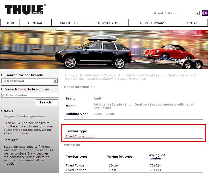 選択した車種に該当するTowbarタイプ一覧が表示されます。(『Towbar Type』欄)