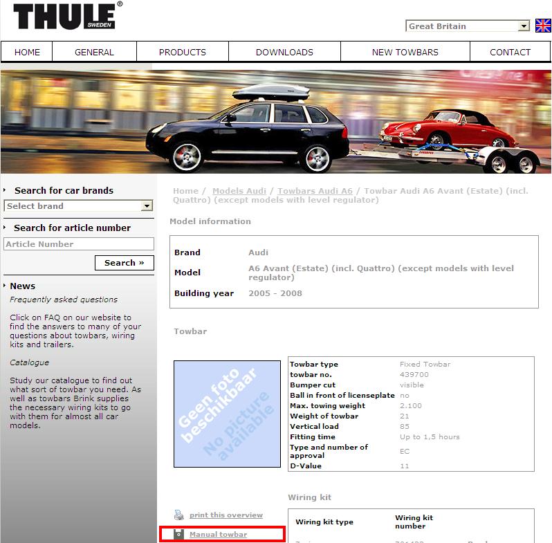 ページ下部の『Manual towbar』をクリックすると、フィッティングマニュアルを開くことができます。