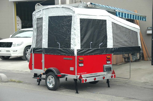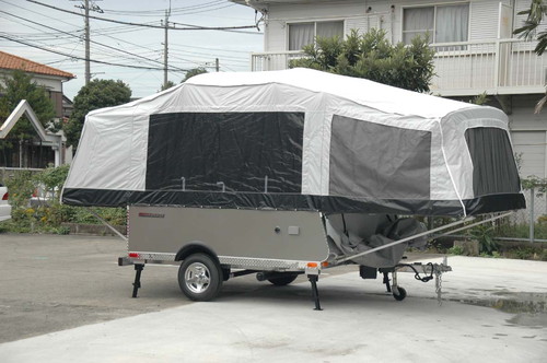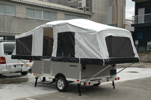 従来のテントタイプのフォールディング(収納型)トレーラと異質でユニークなデザインが大いなる特徴です。