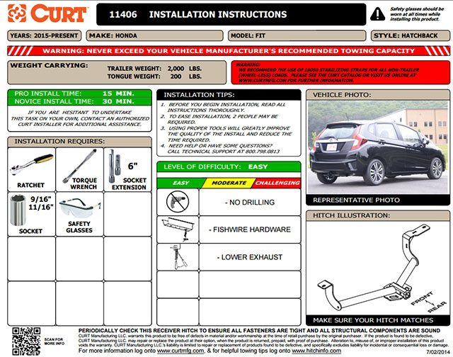 アメリカ最大手ヒッチメンバーメーカーであるCURT社製CM114063アメリカC-1規格ヒッチメンバーが現行モデルHONDAフィット全車種に取付可能なことがわかりました。